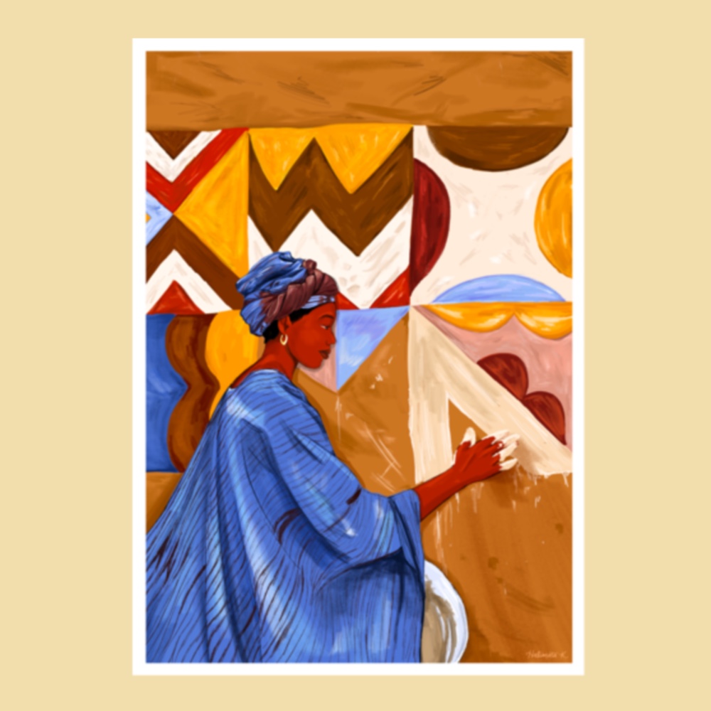 Une femme peint les murs de sa maison en terre à la main, comme autrefois. Un geste ancestral et authentique.